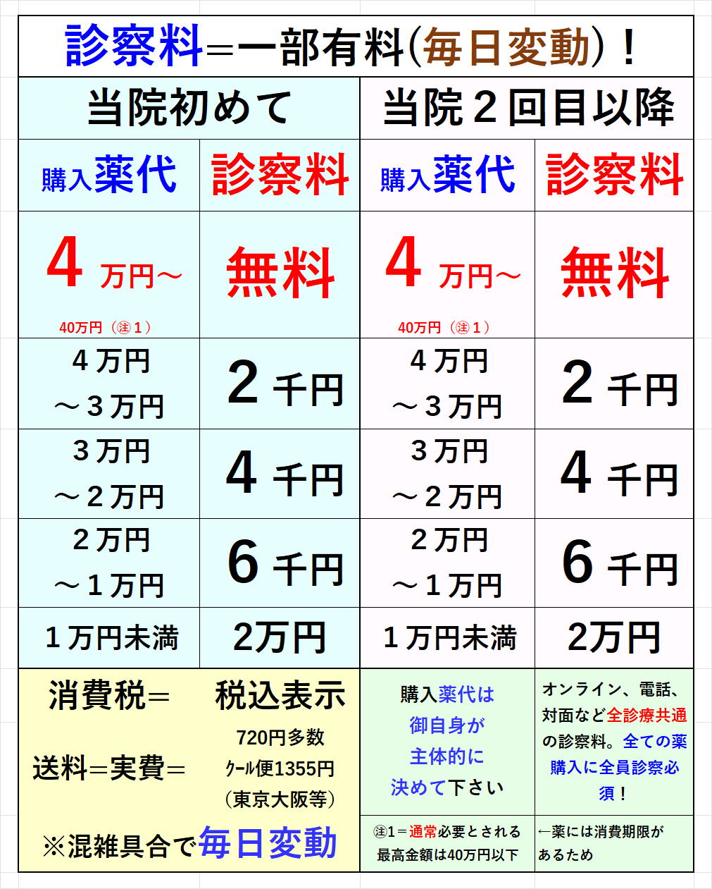 ■診療費・消費税・送料について